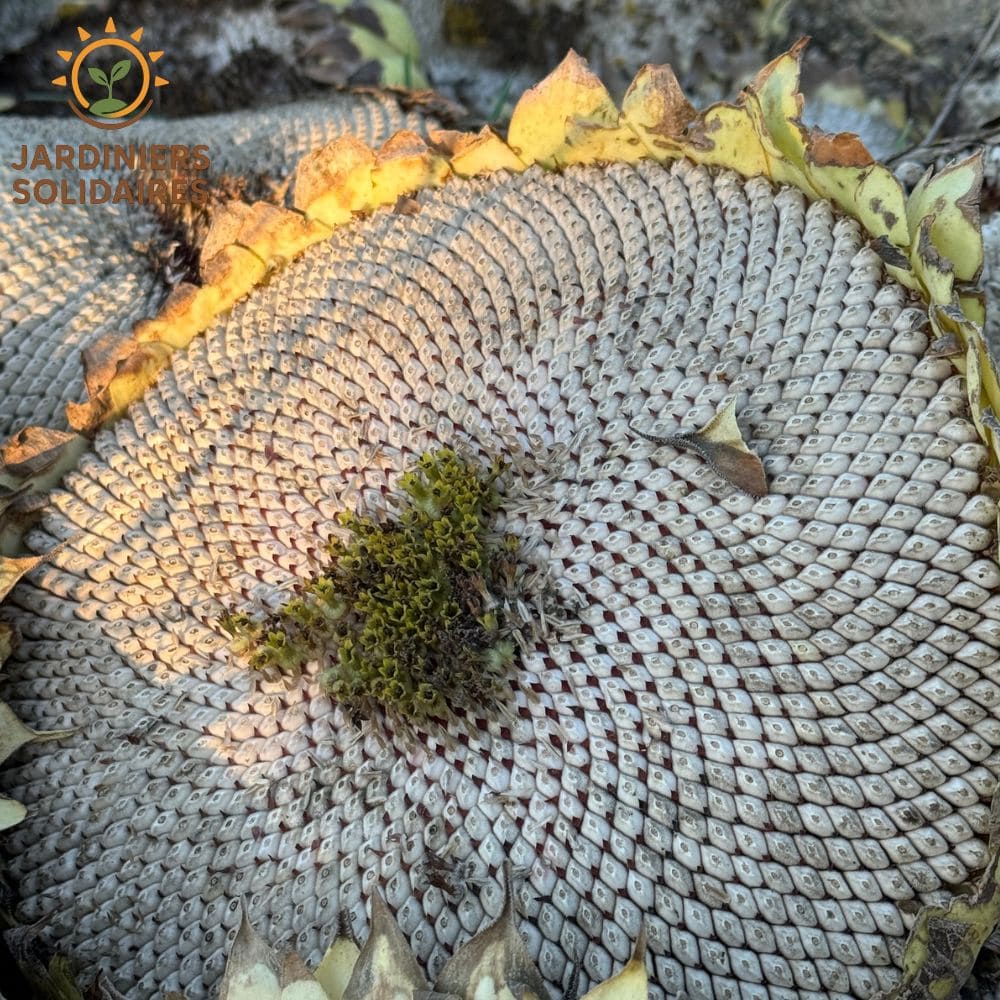 🔁 Comment être sûr(e) de conserver la variété pure lors de la récolte des graines ? Isolez vos plants "Mammoth" des autres variétés de tournesol d'au moins 500 mètres (pollinisation par insectes) ou protégez le capitule avec un voile avant et après la pollinisation pour garantir la pureté variétale. 🌬️